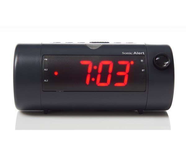 The Sonic Blast is a sleek dual alarm projection clock that is easy to use and operate. In addition to having an extra loud alarm, the Sonic Blast has a bright strobe flashing light to help ensure that you always wake up on time. Add a bed shaker for waking with a shake, optional accessory SS5VB.