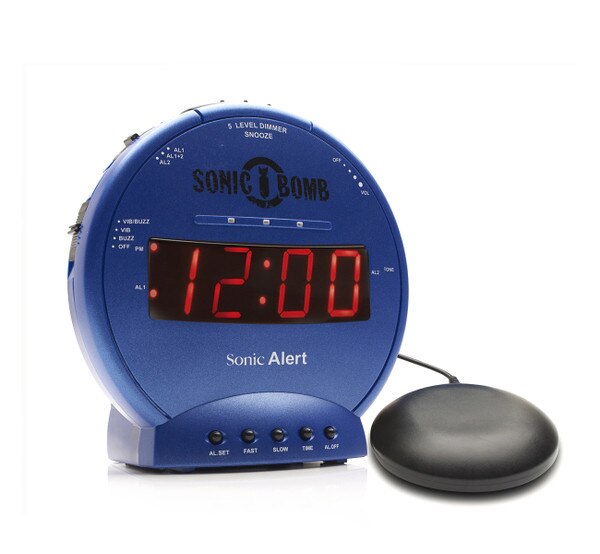 Best-Seller! The Sonic Bomb Alarm Clock with Super Shaker has an extra-loud adjustable 113 dB volume, super bright strobe lights, and the industry leading powerful 12V bed-shaker to ensure you wake on-time, every time.