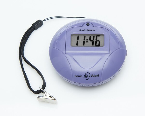 Travel or home, this sleek battery-operated clock is ready to wake you up and start your day. LCD flip-up screen, easy set time and alarm, the alarm will buzz, vibrate, or both to wake you. You can even test to make sure that the alarm is ready to go!